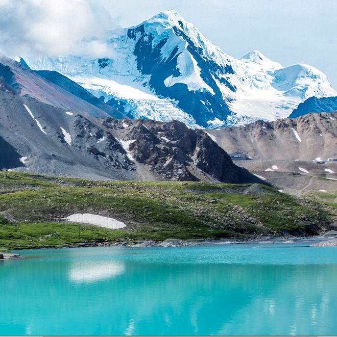 :【慕士塔格峰】观景→ 远眺“冰山之父”(海拔7546米,冰川连绵,在观景台打卡雪山倒影);