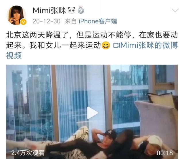 然而,2020年12月30日,张咪分享和女儿李洛伊一起健身的视频后,母女再无互动。